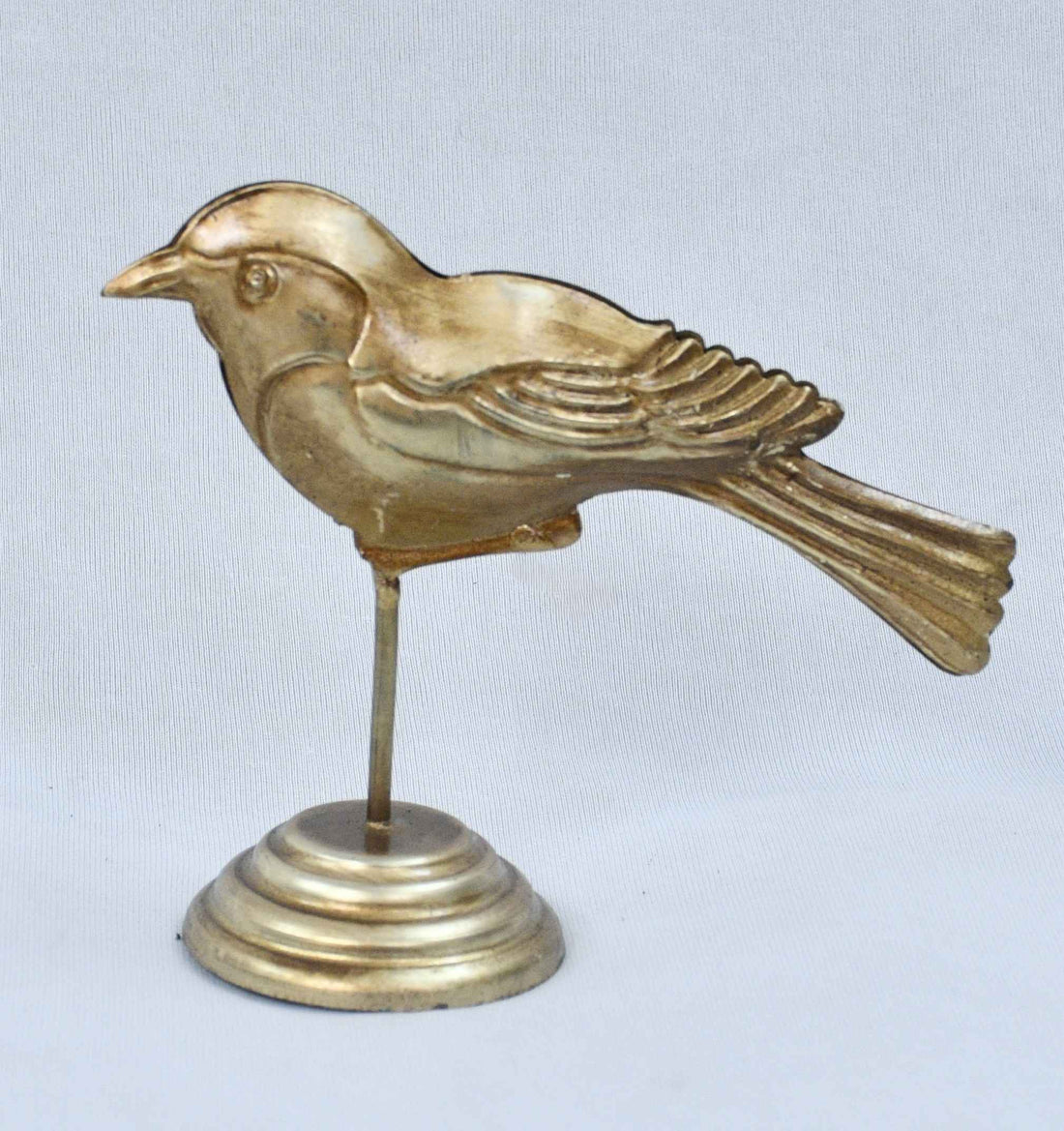 This exquisite handcrafted brass bird sculpture features a graceful bird perched on a delicate branch,...