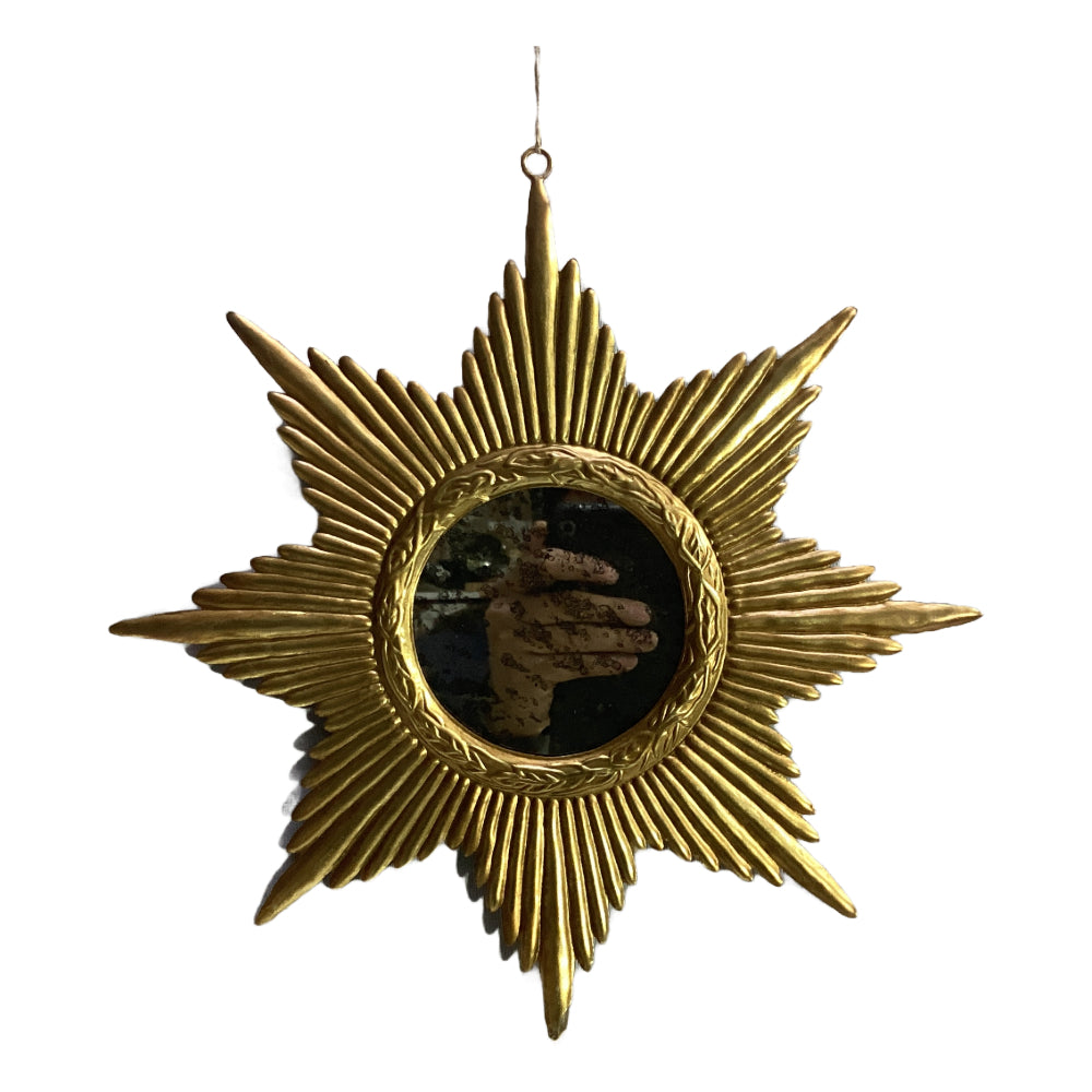 Add a bold touch to your space with this striking ray mirror, handcrafted in metal....