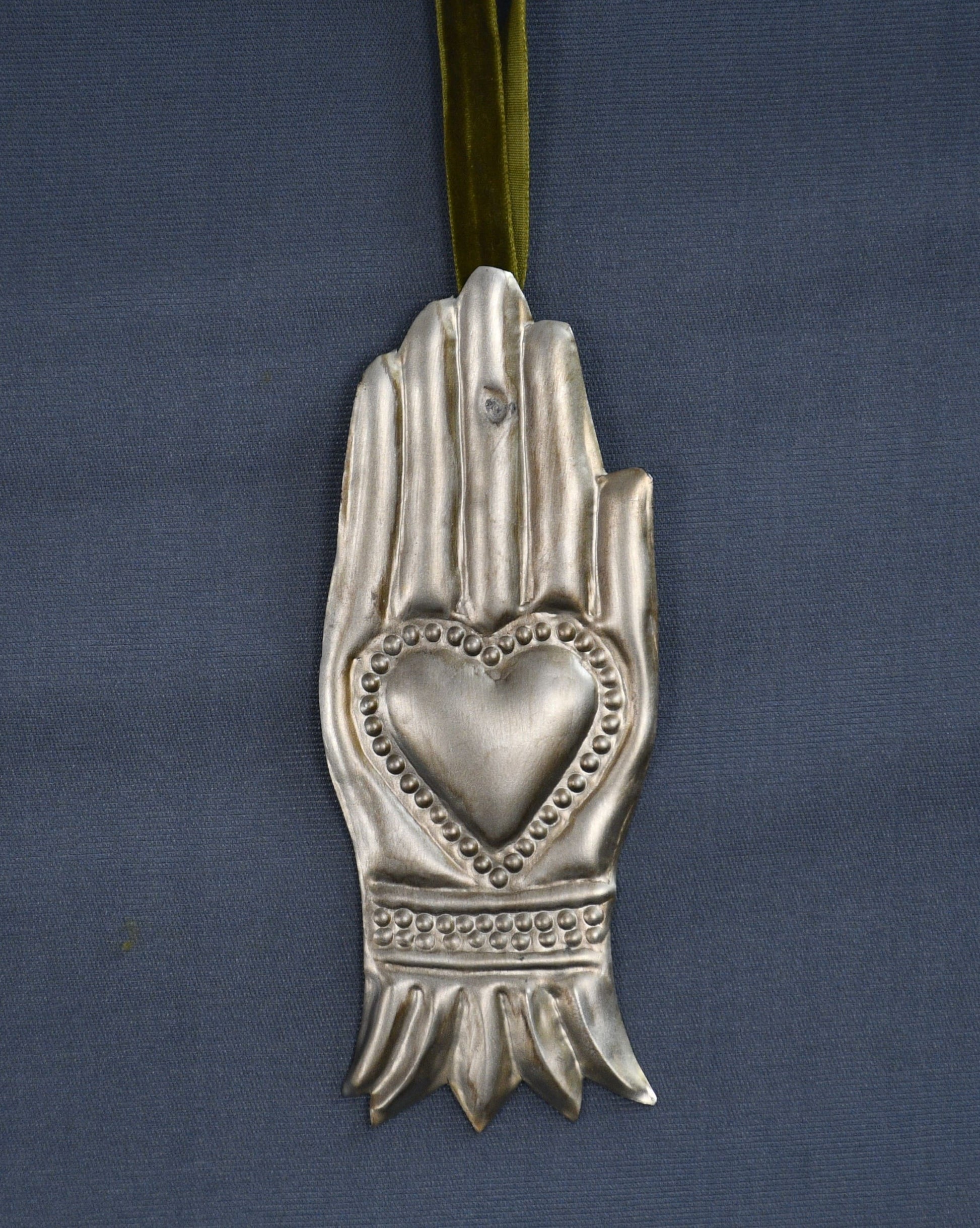 Milagro Hand Christmas Ornament. Inspired by traditional, the hand symbolizes healing, protection, and blessing.A beautiful symbol of faith and goodwill, it also makes a thoughtful and unique gift for the season.